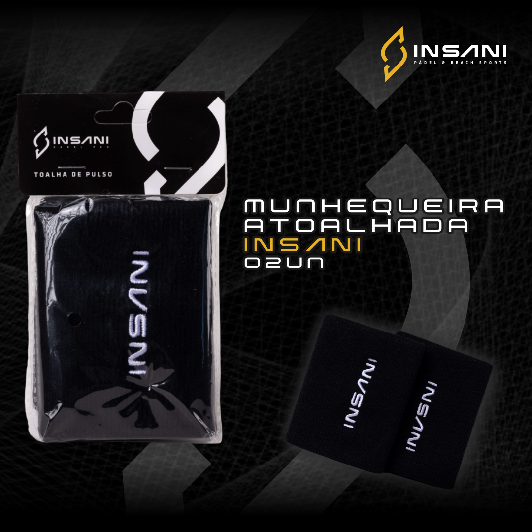 - Detalhamento: Pacote com 2 unidades, formato anatômico ao pulso, tecido atoalhado, munhequeira unissex, logo Insani na parte central na cor branca;
